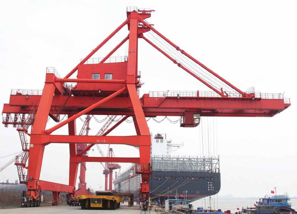 裝卸橋式電磁起重機適用于露天鋼材料碼頭鋼板的吊運工作,主要用于吊卸各類寬厚船板、型材、管材等。該起重機為折臂牽引小車式起重機,為吊鉤,電永磁吊具兩用。裝卸橋式起重機的機構部分由起升絞車、小車牽引絞車、俯仰絞車和大車行走四大機構組成。